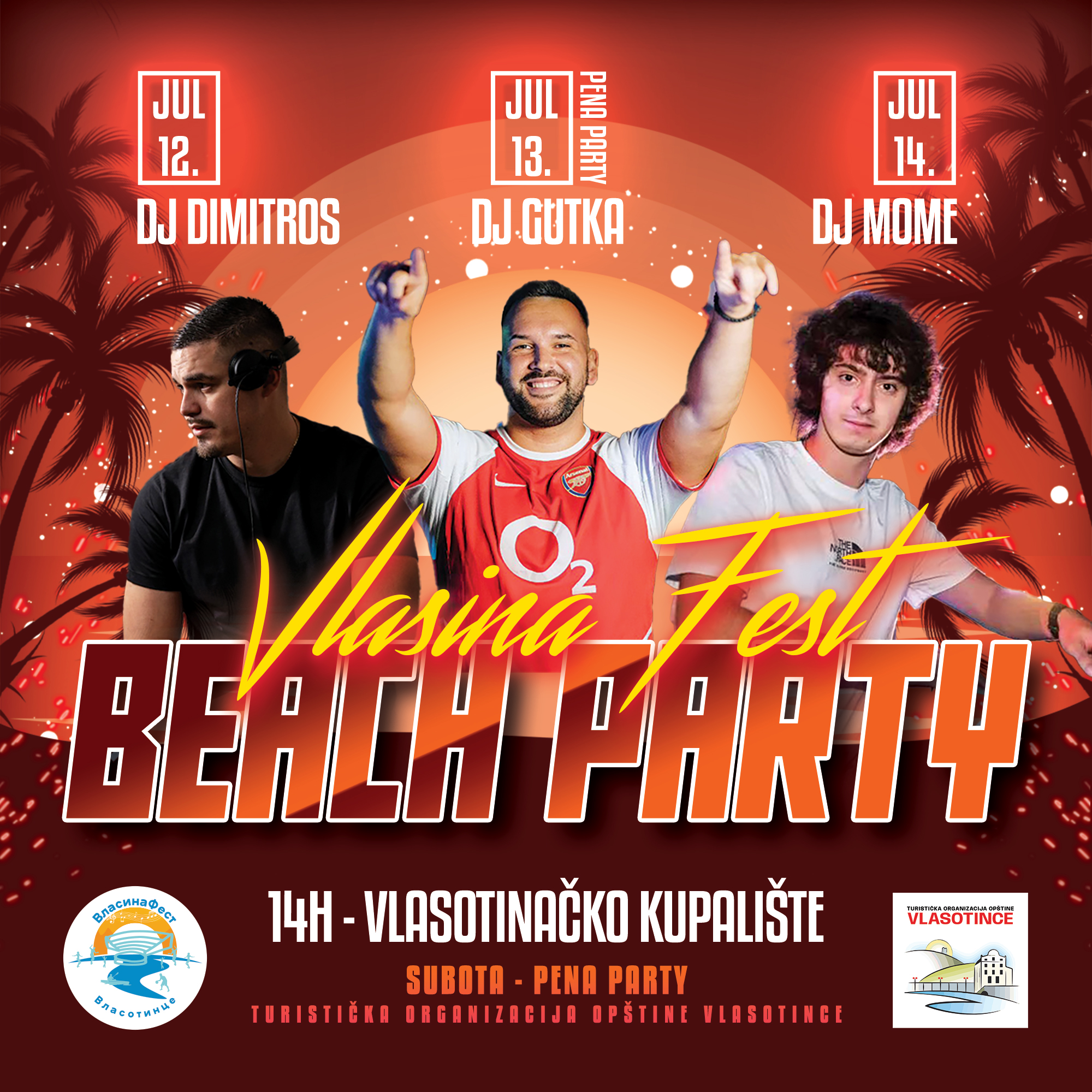 Tako će sva tri dana kupači na Vlasini moći da uživaju u dnevnim žurkama na plaži sa didžejevima i pena partije , a u večernjim satima organizuju se koktel parti, koncerti na letnjoj pozornici, pa će u petak nastupati Angelina, a u subotu su za dobar provod zadužene Crne Mambe.
