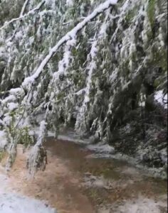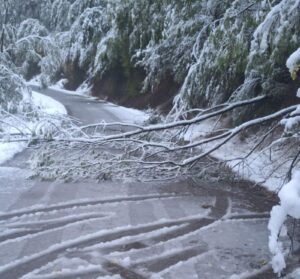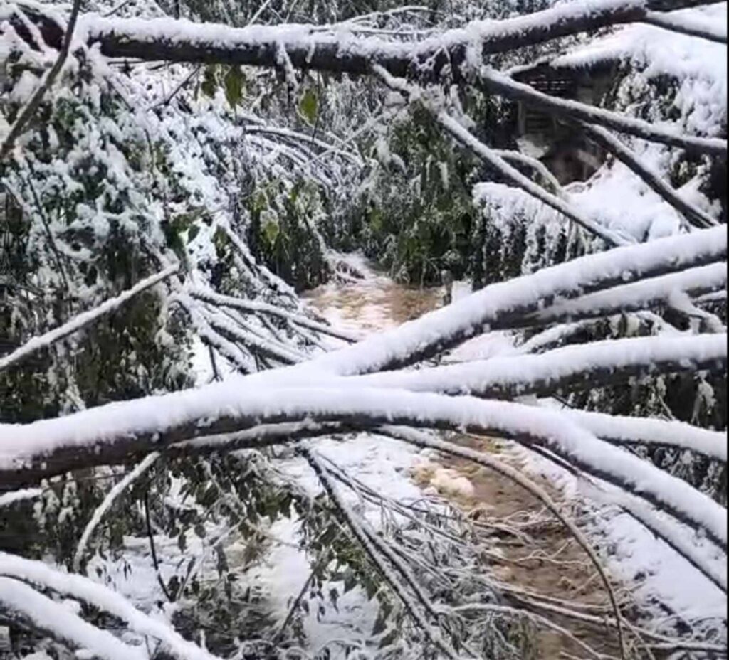 Zbog velike količine mokrog snega došlo je do obaranja stabala koja su, iščupana iz korena, padala na kolovoz i time učinila puteve ka planinskim selima potpuno neprohodnim.